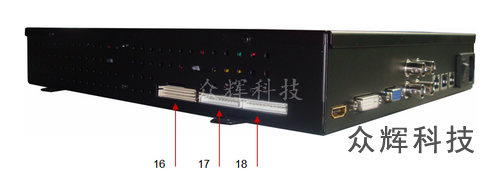 17、18 | 背光DC 24V電源接口,帶背光開(kāi)關(guān)和亮度控制,采用防呆設(shè)計(jì)。 |